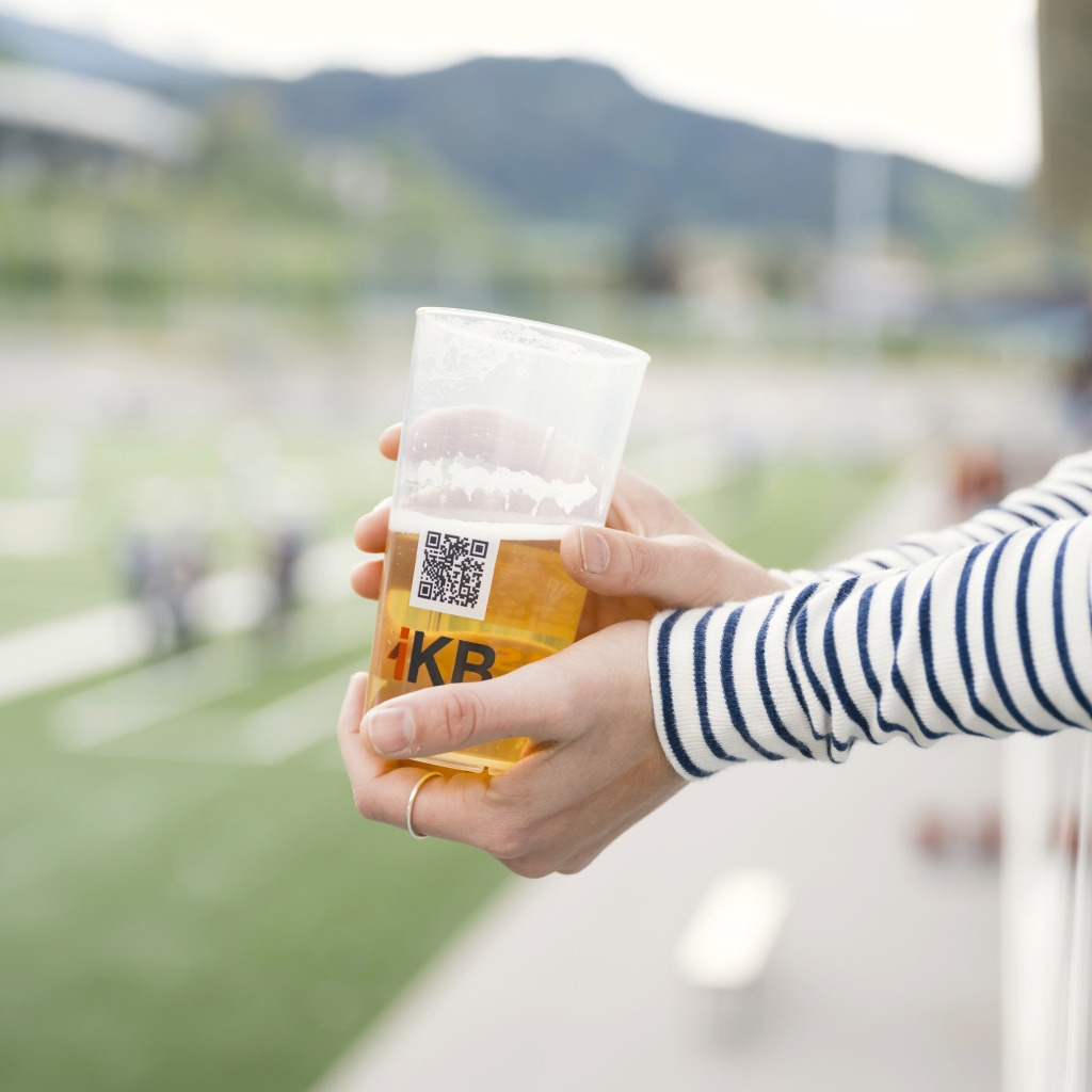 Ob Saft, Limo oder Bier – für Getränke stehen stabile Mehrwegbecher in zwei Größen zur Verfügung. Sie sind bruchfest, angenehm zu verwenden und können nach der Veranstaltung ganz einfach wieder gereinigt werden. So landen deutlich weniger Einwegbecher im Müll.